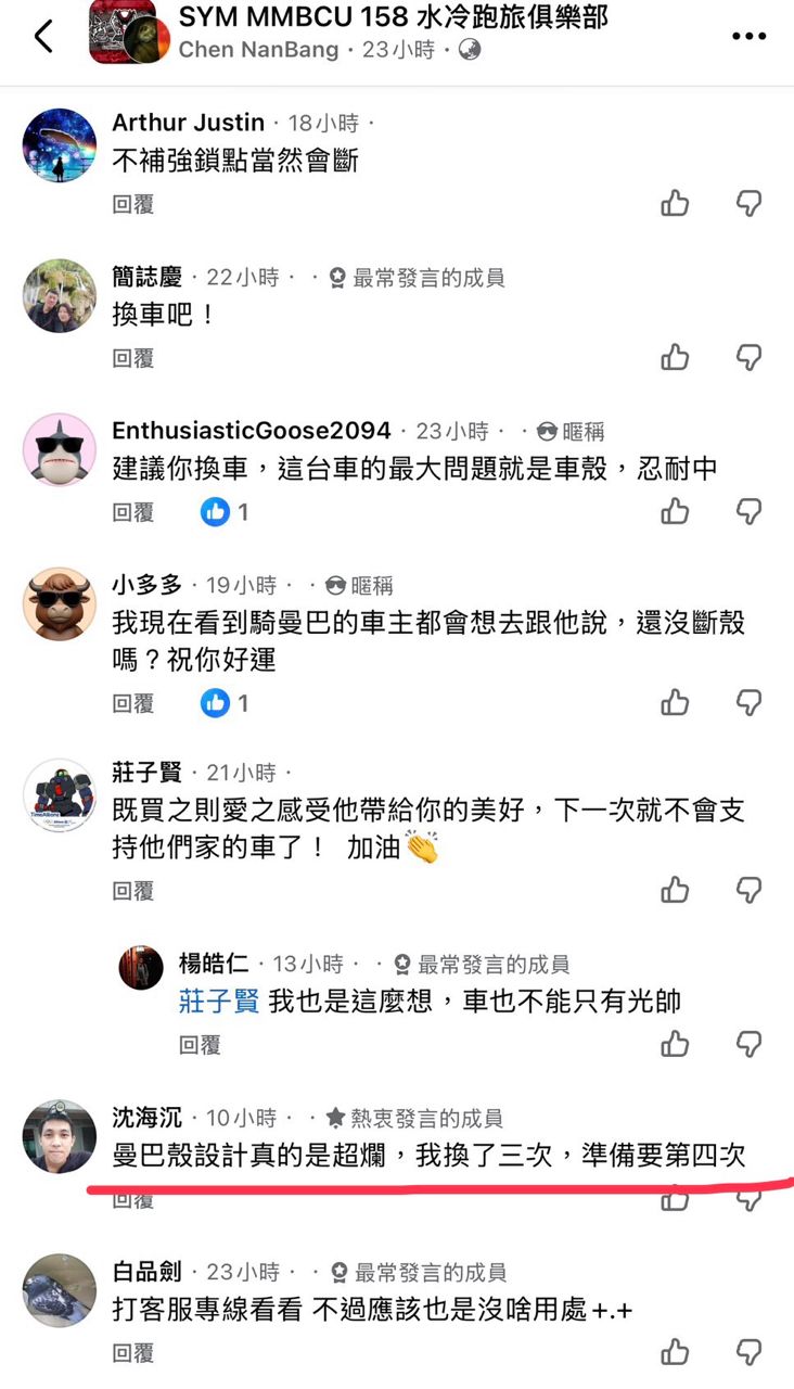 → s973311: 好扯 MMBCU看到有人車殼要換第四次 ㄏ 42.73.223.139 01/19 09:45