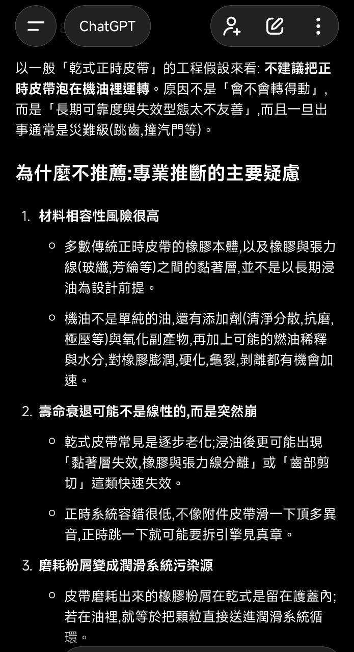 → mingchaoliu: 反而乾式皮帶只要定期更換皮帶與惰輪就很少出包 12/27 09:56