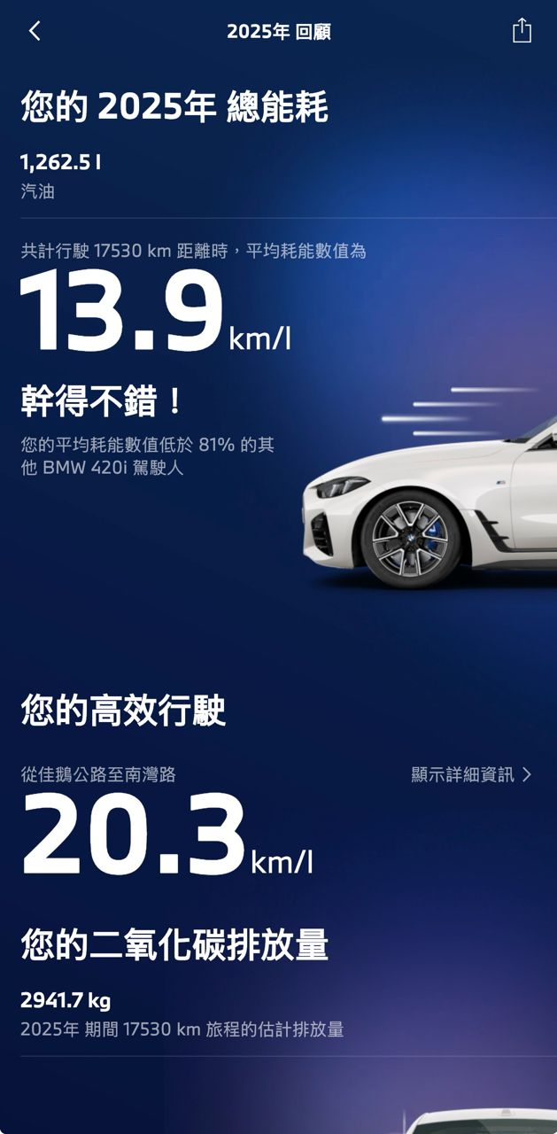 推 s5813802: 420i 跑兩萬 12.5km/L 差不多 01/04 21:32