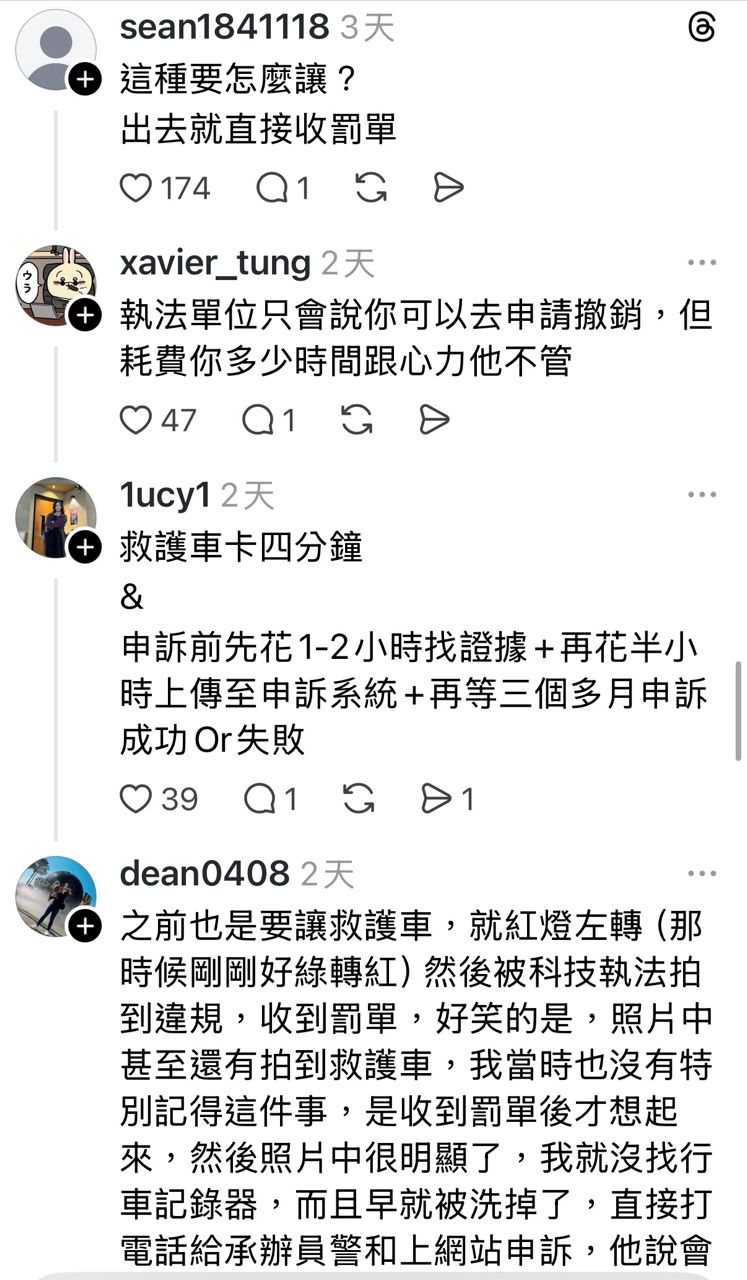 → pleasepo: 科技執法都是影片截圖,有廣角鏡頭很容易判斷有無救護 01/13 00:21