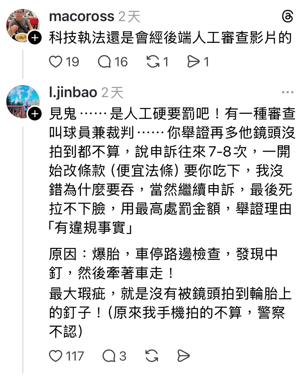 → Czernin: 被開單了還要自己去申訴,簡直浪費時間 01/12 23:40