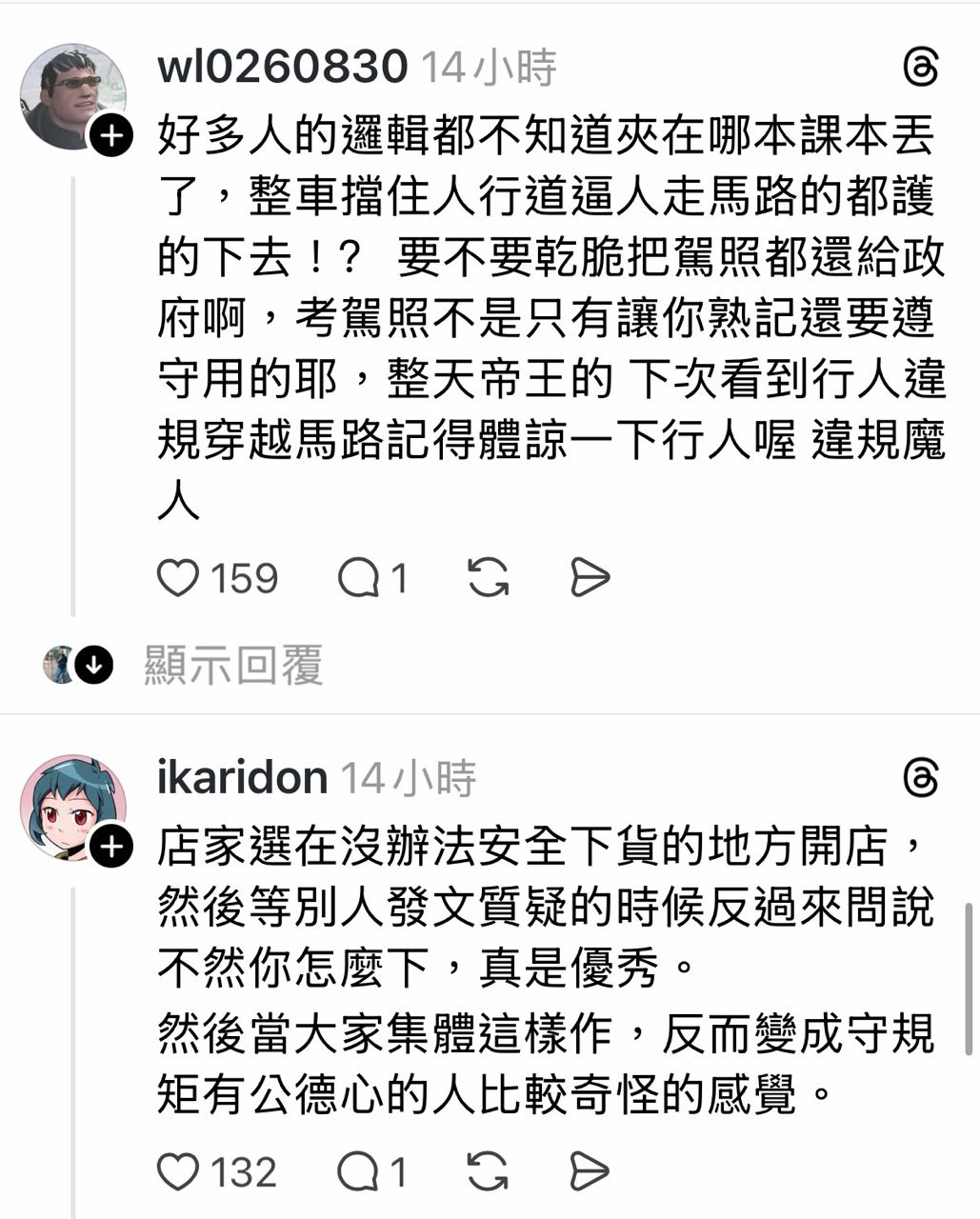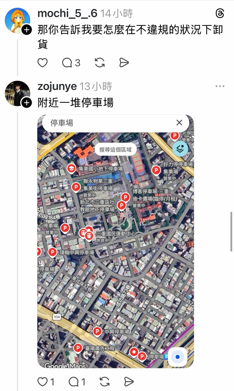 → douge: 法規有允許特定行業的臨時停車 卸貨就是其中一個 02/03 13:14
