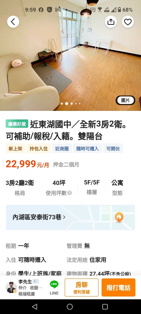 → pz5202: 居然40坪才2萬3 還租補 01/22 10:01