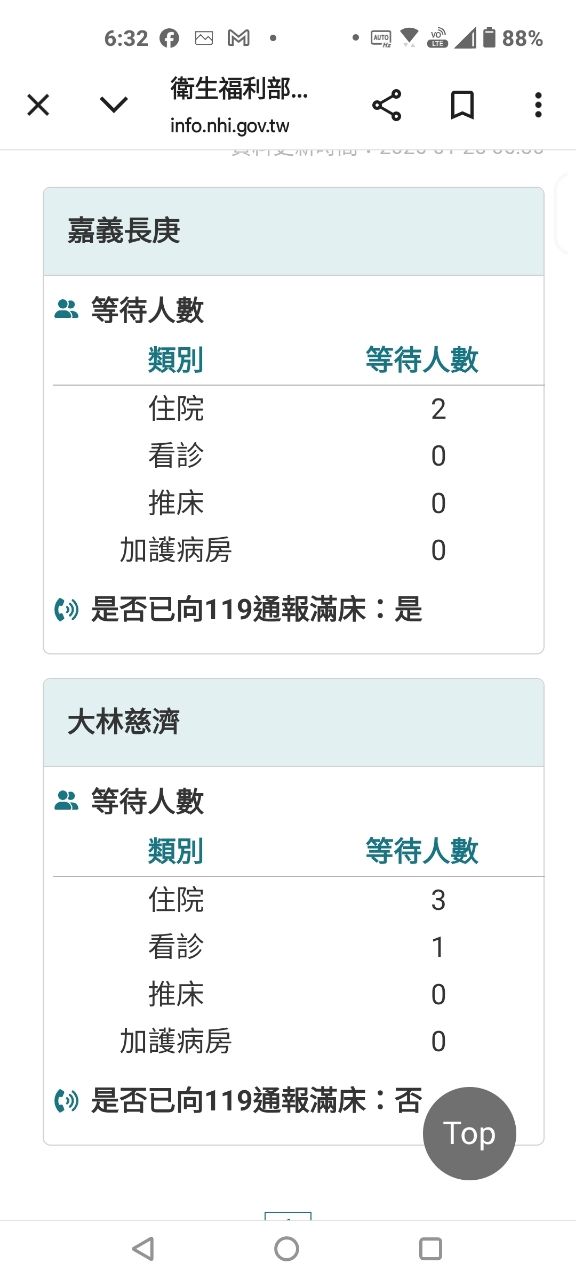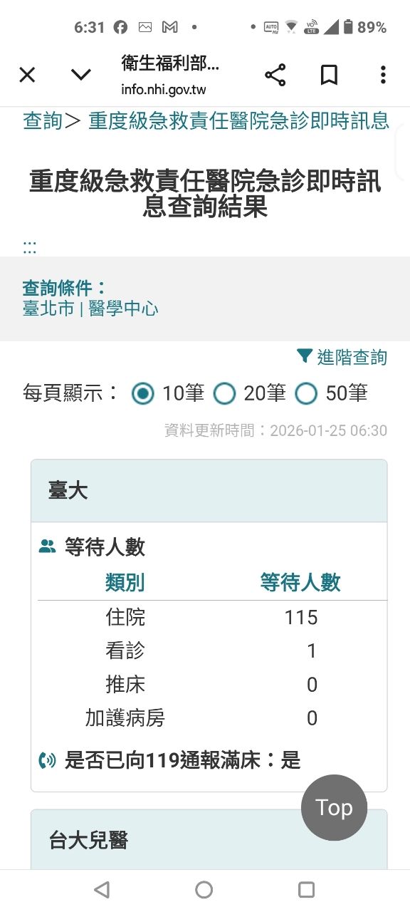 推 quiet93: 衛生福利部中央健康保險署-重度級急救責任醫院急診即時訊 01/25 06:30