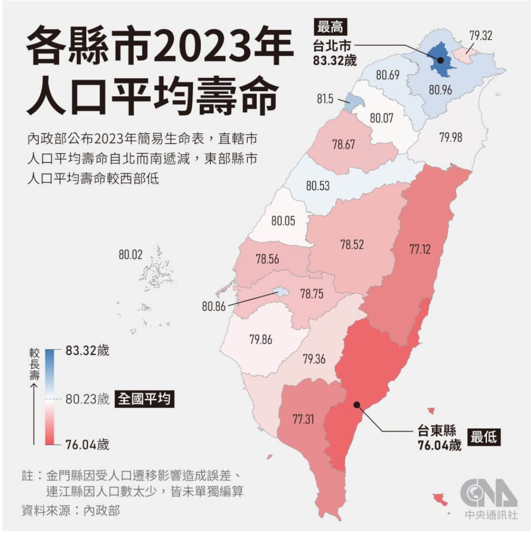 → rainsilver: 響壽命 並不是因為住台北活比較久 而是因為能活比較 01/25 15:03