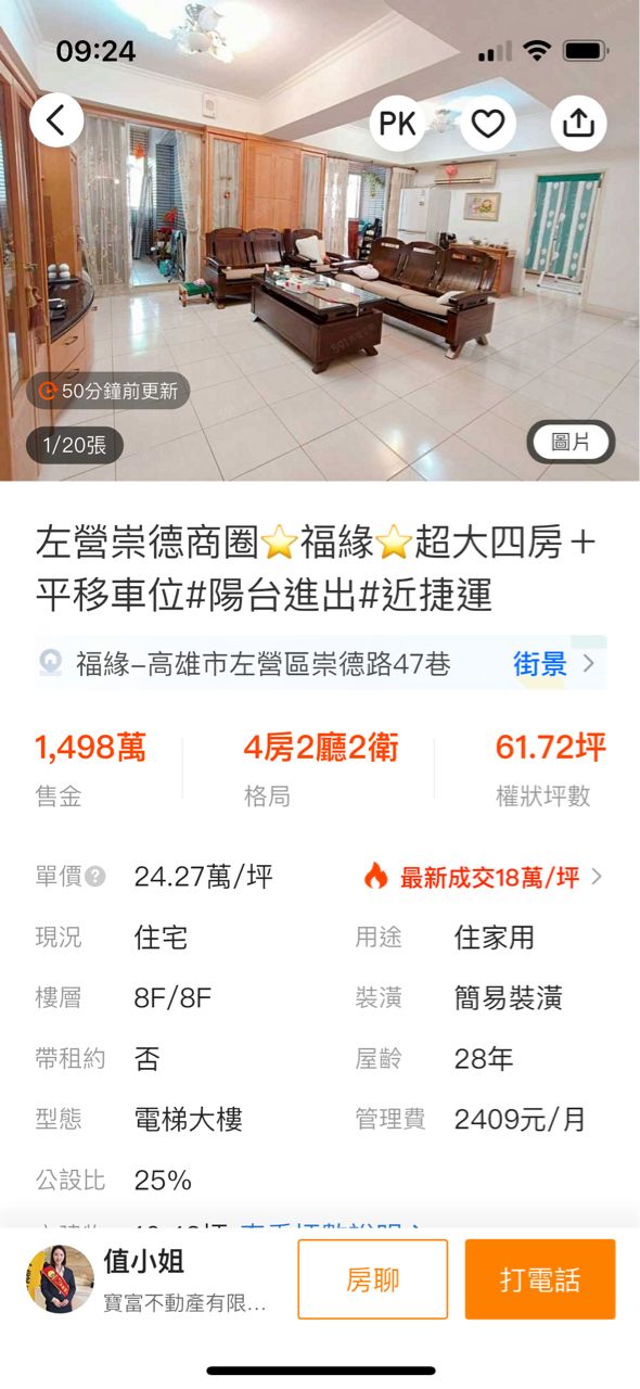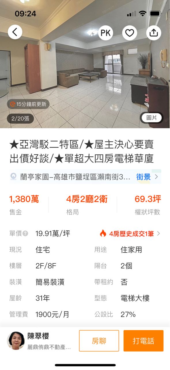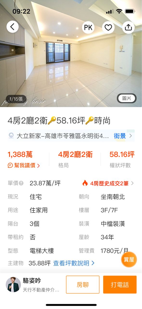 → Tosca: 1500在鳳山就能找到中古四房電梯平車了好嗎 04/15 08:24