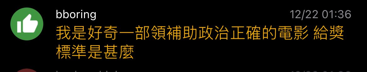 推 bboring : 好的電影靠口碑 期待白恐電影哪天不靠補助也能得獎 12/22 03:13