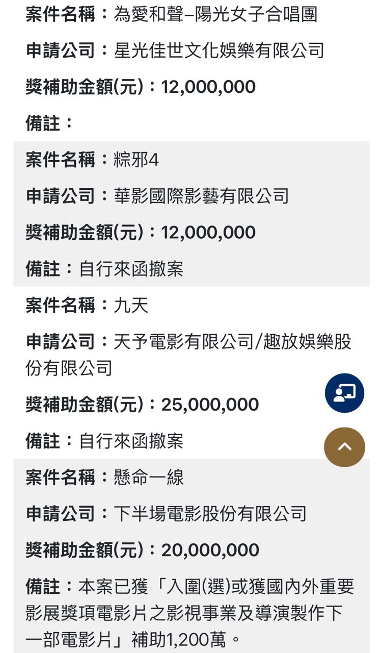 推 Beandou : 對喔陽光有申請到補助,這幾年好像沒拿補助但票房好 01/20 00:52
